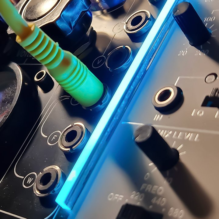 Frontiers by SynTesla is a 1hp (5.08mm) wide module equipped with a specially developed lighting system that provides a bright light without being blinding and totally uniform throughout the height of the module.This module be used to fill a gap in your eurorack system, to delimit your installation into different visible zones or simply because it makes your eurorack case even more beautiful… and you like beautiful things!